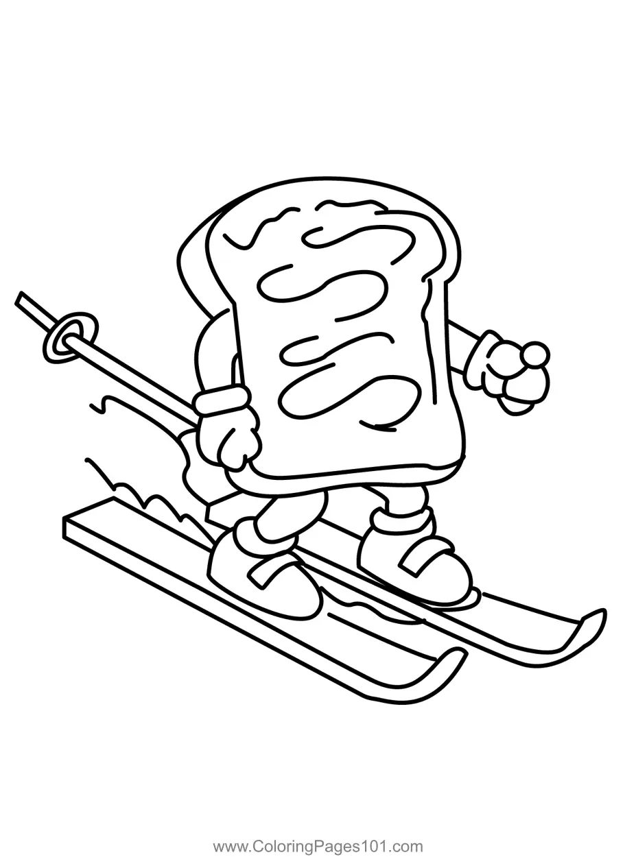 Peanut Butter Sandwich Skiing Fun Coloring Page