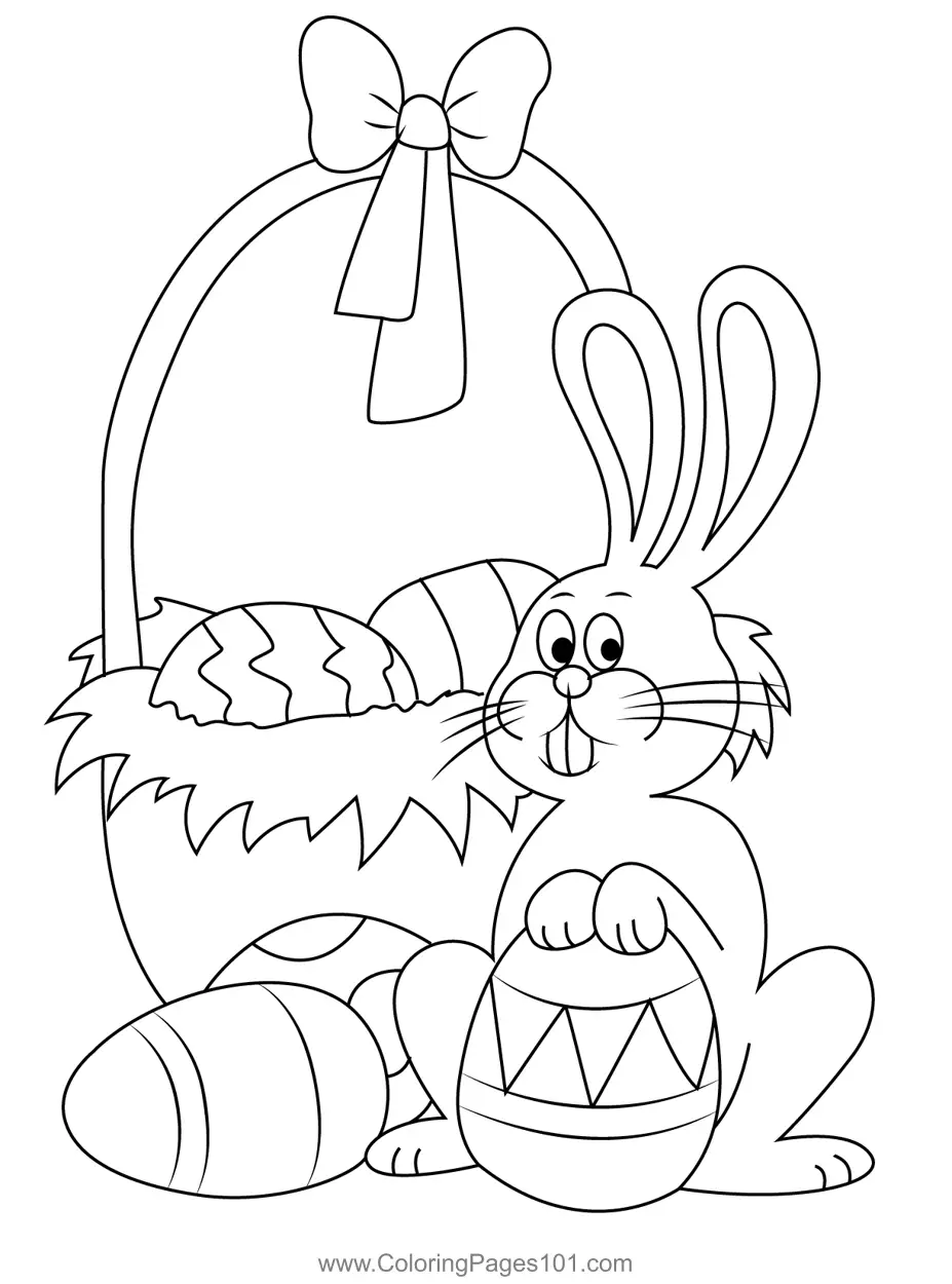 Bunny With Easter Eggs Coloring Page