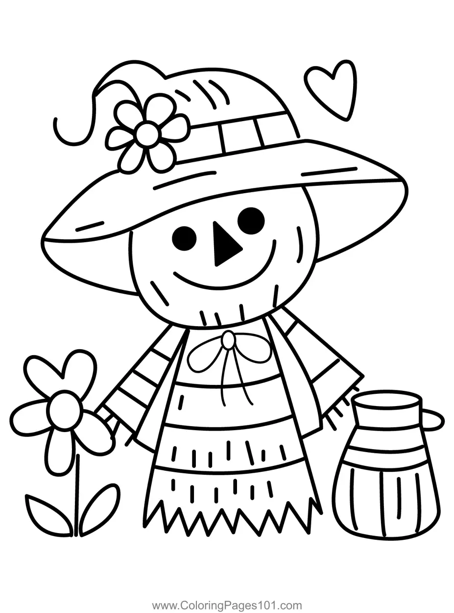 Smiling Scarecrow Autumn Friend Coloring Page