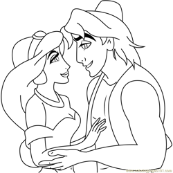 Aladdin And Jasmine Coloring Pages for Kids Online