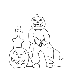 Pumpkin Man in Graveyard
