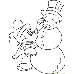 Mickey Mouse with Snowman Coloring Pages for Kids Online