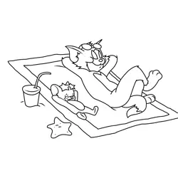 Tom And Jerry Relax On Beach Coloring Pages for Kids Online
